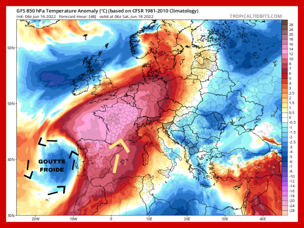 En image – L’arrivĂ©e de l’air chaud samedi avec ici, l’anomalie de T° Ă 1500m d’altitude.
