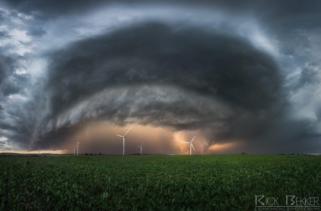 Plusieurs chasseurs d’orage l’avaient dans l’oeil d’un objectif… Ce fut notamment le cas du nĂ©erlandais Rick Bekker qui a pu immortaliser « le monstre » d’une largeur de 200 mètres, visible en bas Ă droite de ce nuage et de l’Ă©olienne.