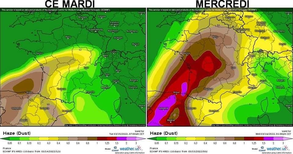Comme annoncĂ© hier, le premier nuage de sable de l’annĂ©e a impactĂ© l’Ă©tat du ciel en France MĂ©tropolitaine ce Mardi 15 Mars 2022…