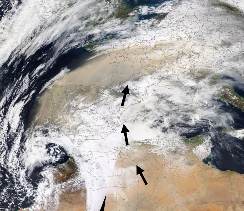Suite Ă des vents violents au Sahara, les particules de sable (les plus lĂ©gères) ont survolĂ© la MĂ©diterranĂ©e jusqu’Ă retomber au sol en France, au contact des pluies…