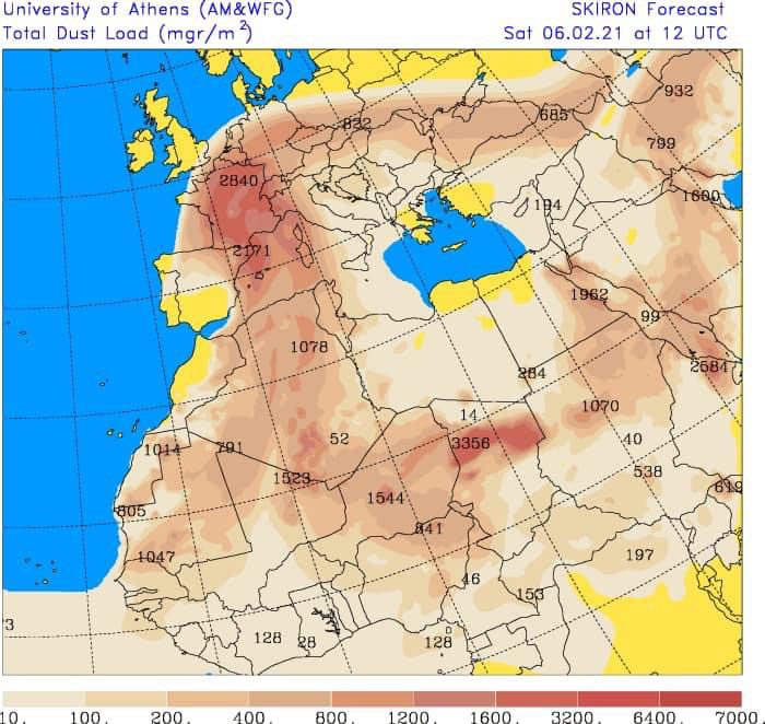 La perturbation présente le Samedi 06 Février 2021, est associée à quelques gouttes de pluie et des vents « descendants« … Ainsi, les particules de sable sont descendues dans les basses couches de l’atmosphère en arrivant en France et les poussières sont même tombées au sol, au passage des faibles averses de pluie !
