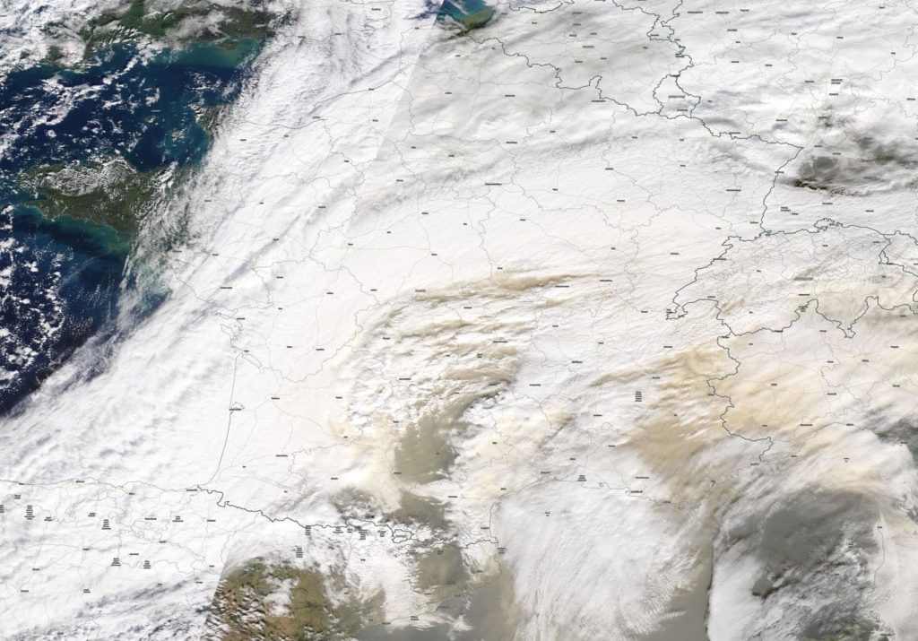 À l’origine de ce flux de Sud, des vents violents présents au Nord de l’Afrique ont arraché d’énormes quantités de sable du Sahara, deux jours plus tôt ! Ces particules dites « de poussière » ont survolé la méditerranée à très haute altitude, avant de rencontrer une perturbation très affaiblie en France.