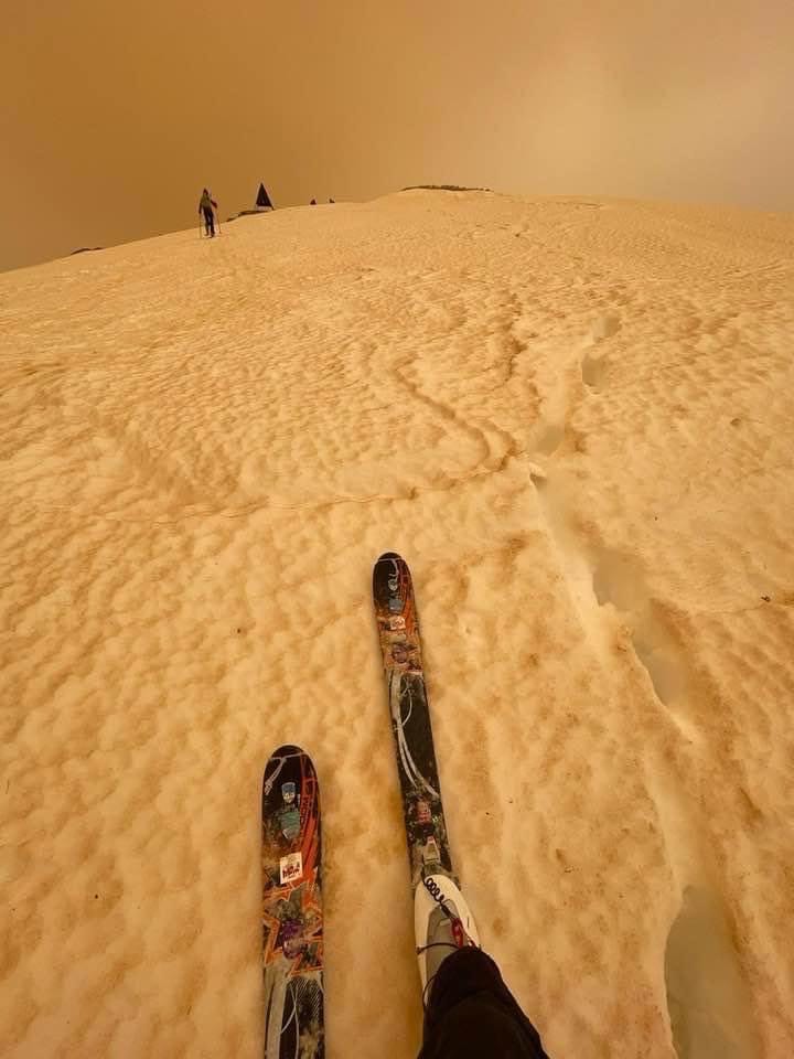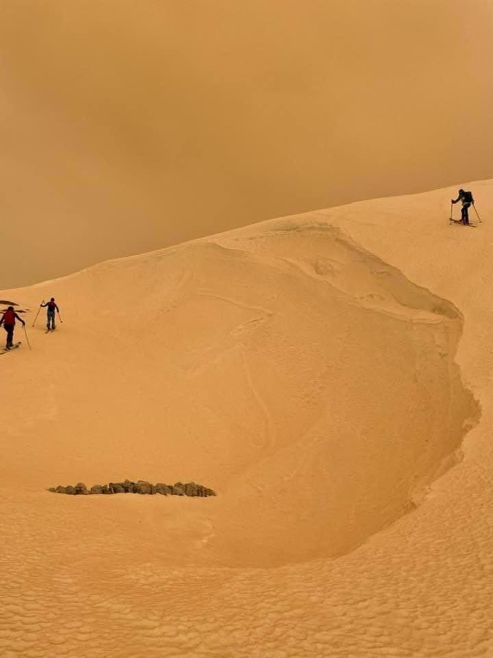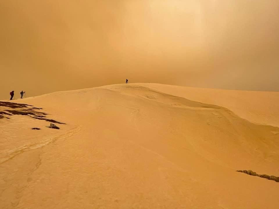 Dans le Massif du Jura, le manteau blanc présent au-dessus de 900m d’altitude (à cette époque) est chargé d’eau/d’humidité… Ainsi, les particules de sable se sont « collées » et déposées en quelques heures à la surface de la neige… Transformant les pistes de ski en véritables « dunes de sable » dans le Jura !