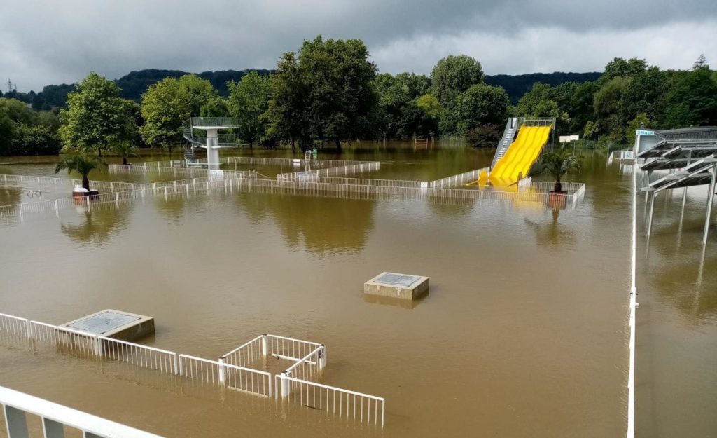 Comme à chaque crue, la piscine de Chalezeule est « sous les eaux » ! Mais cette fois-ci… en plein mois de Juillet