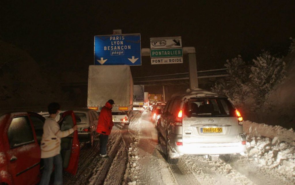 À 22h00, l’autoroute A36 ferme entre Besançon (25) et Mulhouse (68) alors que des centaines de naufragés de la route sont relogés d’urgence dans des gymnases… à Voujeaucourt (25) notamment.