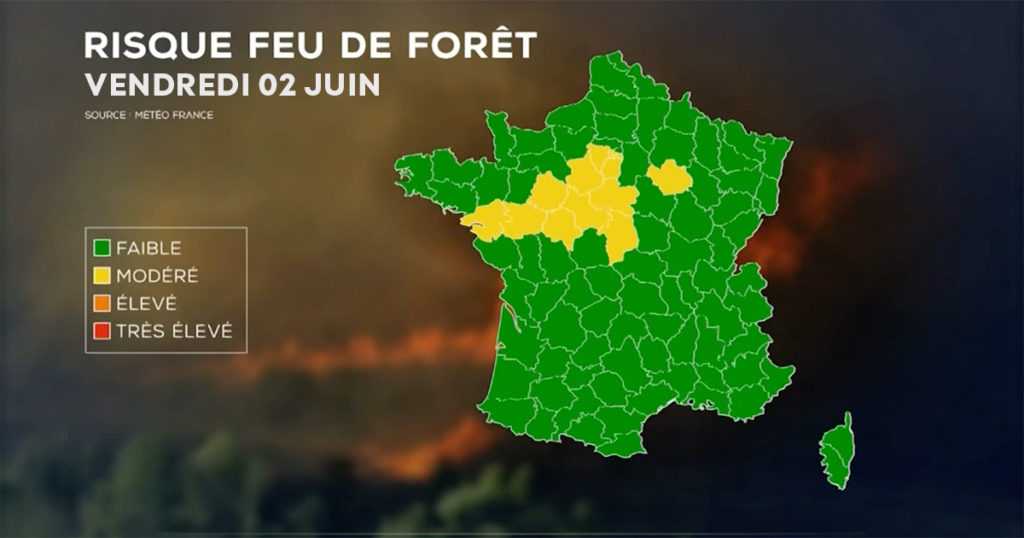 À compter du vendredi 02 juin 2023, une « Météo des forêts » sera diffusée tous les jours à 17h sur le site web de Météo-France. Elle permettra aux Français de savoir quel est le risque de départ de feu, selon les conditions météorologiques et environnementales.