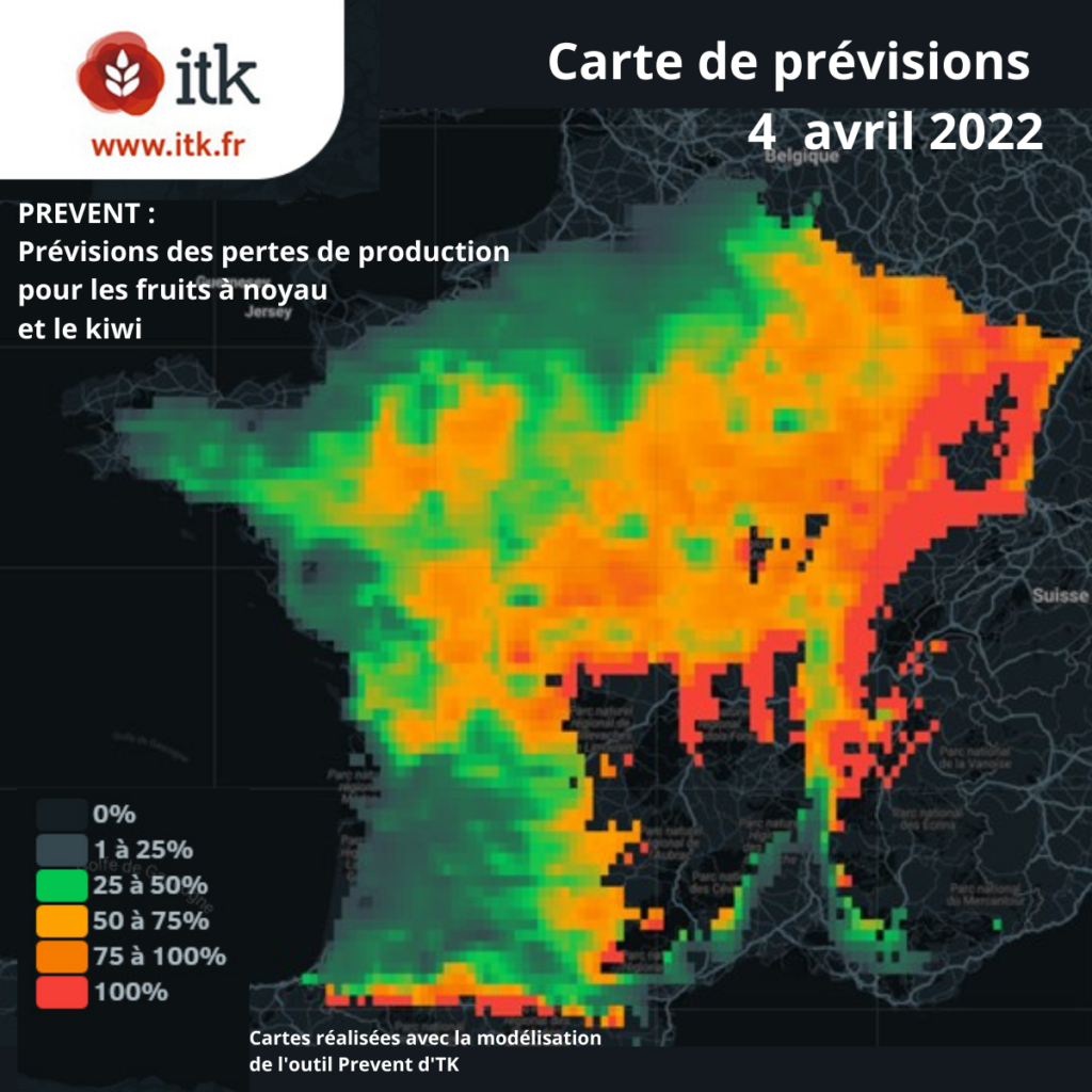 En image – Prévision des pertes de production pour les fruits à noyau, ce Lundi 04 Avril 2022 !