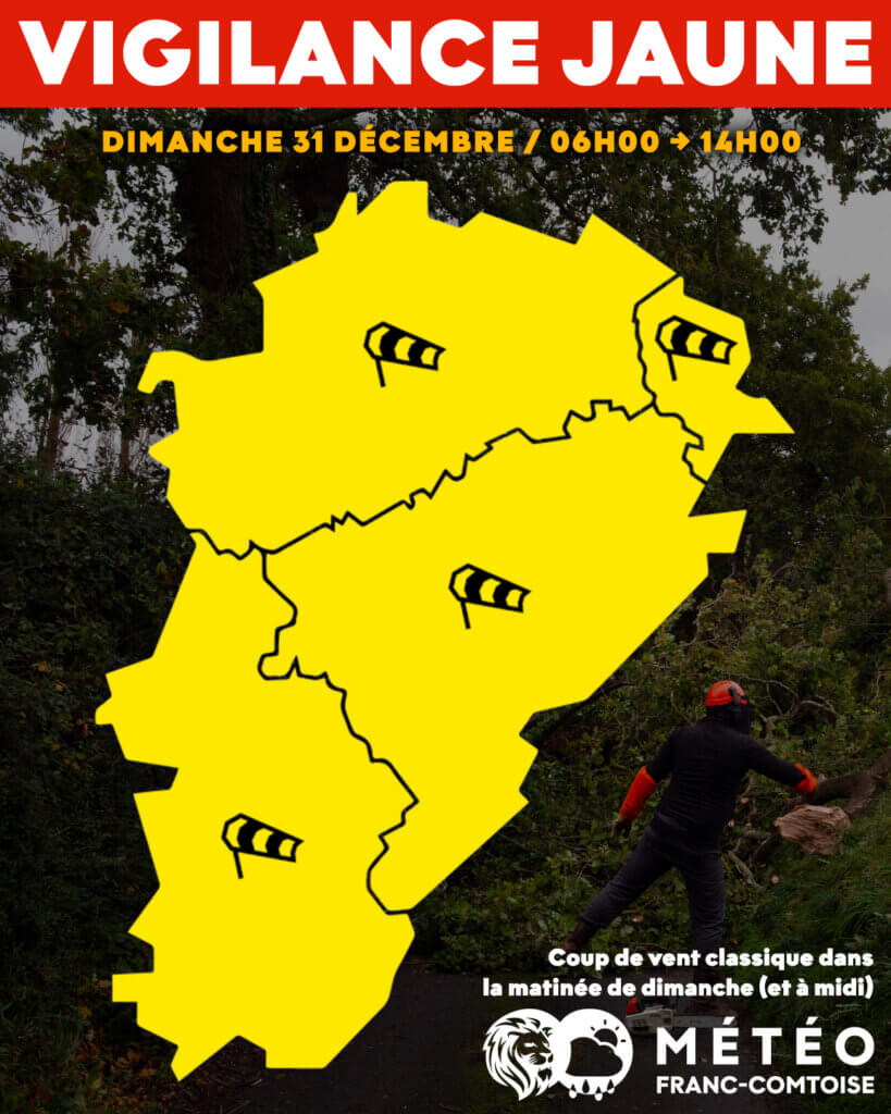« L’ensemble de la Franche-Comté est donc placé en vigilance jaune pour le paramètre vent. »