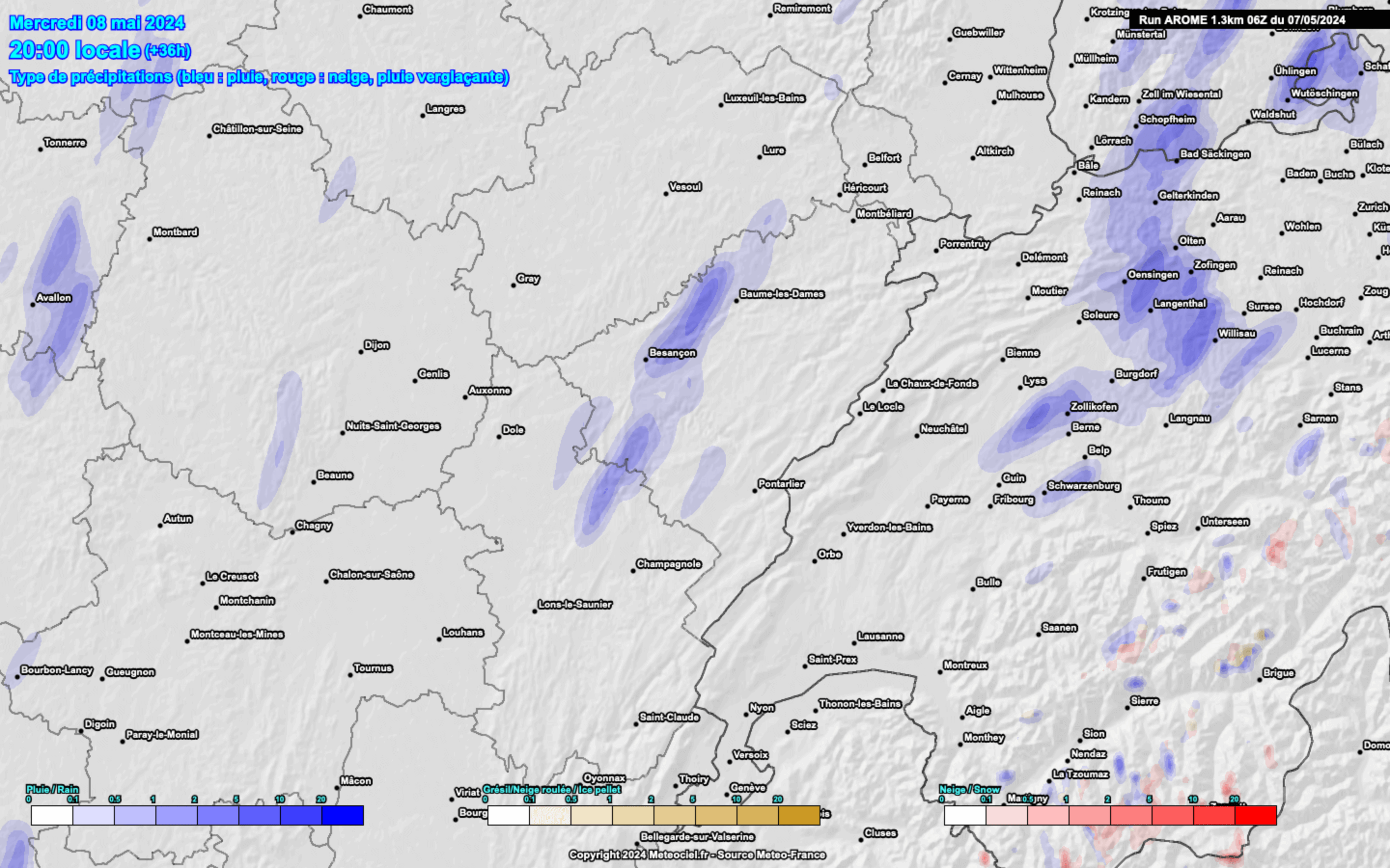 Modélisation des potentielles averses, ce mercredi 08 mai 2024 en toute fin de journée…