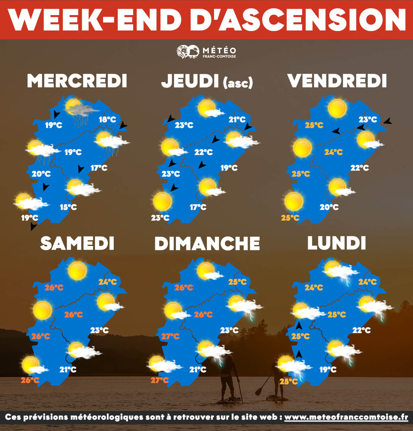 ☀️ Retrouvez pour l’occasion une infographie (par Météo Franc-Comtoise) sur ces 6 jours :