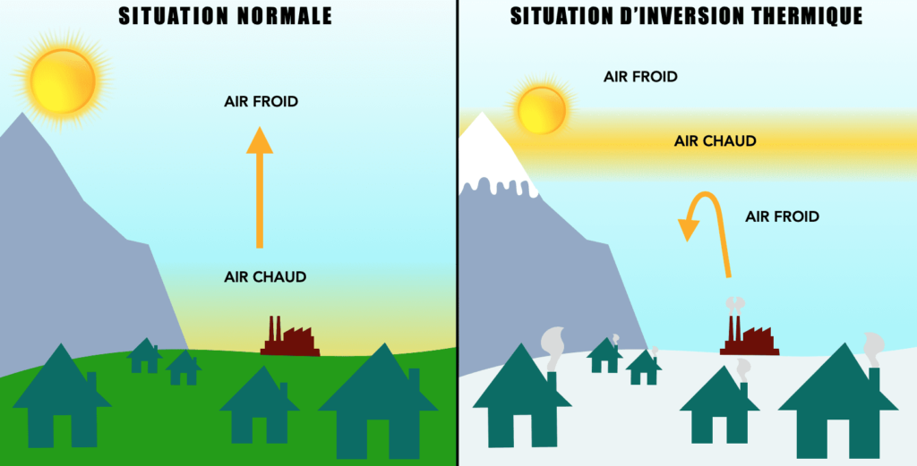 Si de petites gelées reviendront chaque nuit mais en particulier en rase-campagne ou sur les plateaux et vallées (hors sommets), les après-midis de samedi et dimanche seront dominées par une douceur particulière qui se cantonnera en montagne ! Pourquoi ? Parce que l’air doux est moins dense que l’air froid (il remonte donc) et parce que la plaine sera touchée par quelques brumes (sans vent) favorables à un ralentissement de la hausse du mercure. C’est l’inversion thermique !