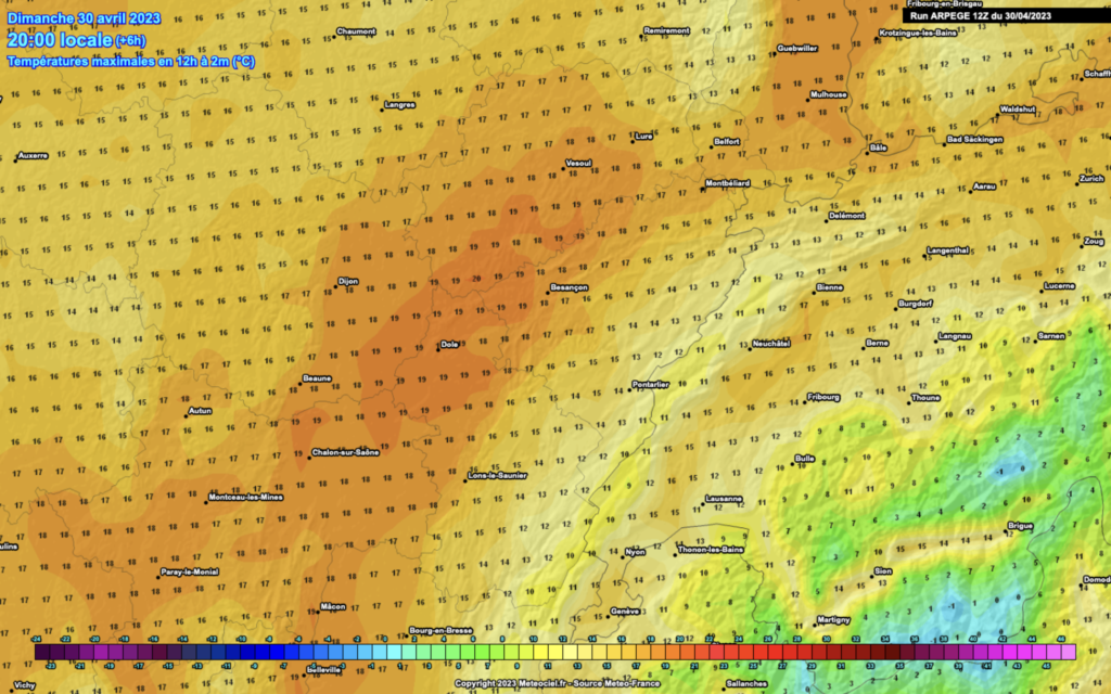 Cette amélioration s’accompagnera d’une grande douceur (malgré une petite bise) avec des températures qui afficheront — à nouveau — une vingtaine de degrés en plaine ce mercredi après-midi… puis 20 à 25°C jeudi après-midi dans la région.