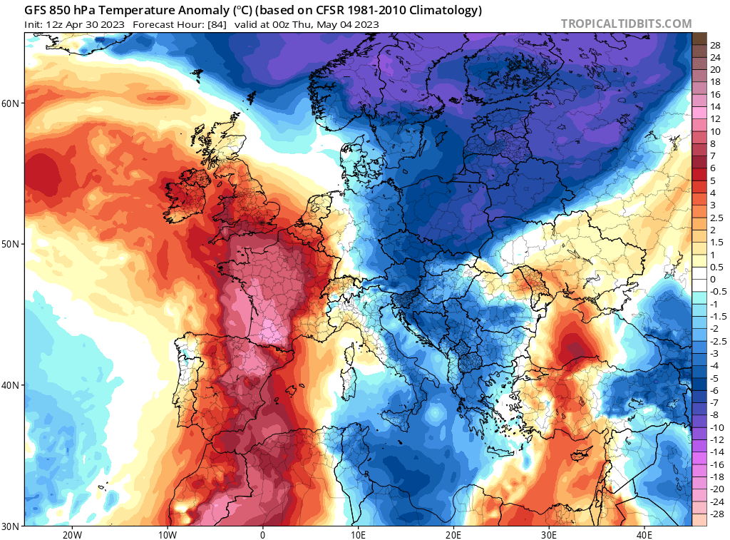 (Anomalie de T° à 1500m, jeudi 04 mai 2O23)