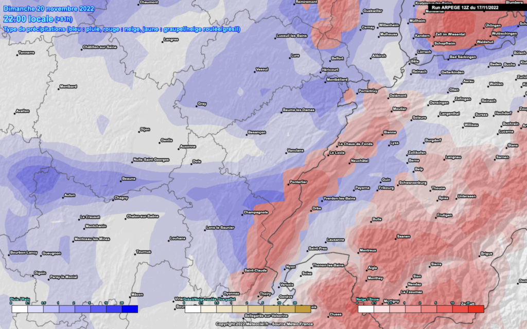 Quant à mardi 22 novembre, de nouvelles précipitations pourraient gagner la Franche-Comté mais les températures — en légère hausse — devraient faire monter la limite pluie-neige à 1100 mètres d’altitude… Le tout avant un redoux beaucoup plus marqué pour les journées de mercredi à dimanche !