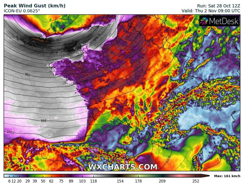 Modélisation des rafales au 02 novembre – ©MetDesk