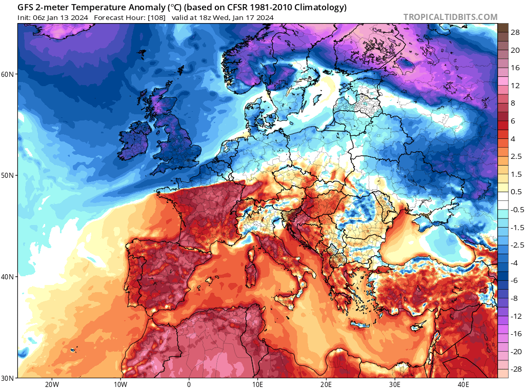 Modélisation – Anomalie de température le 17-01 avec important conflit en France