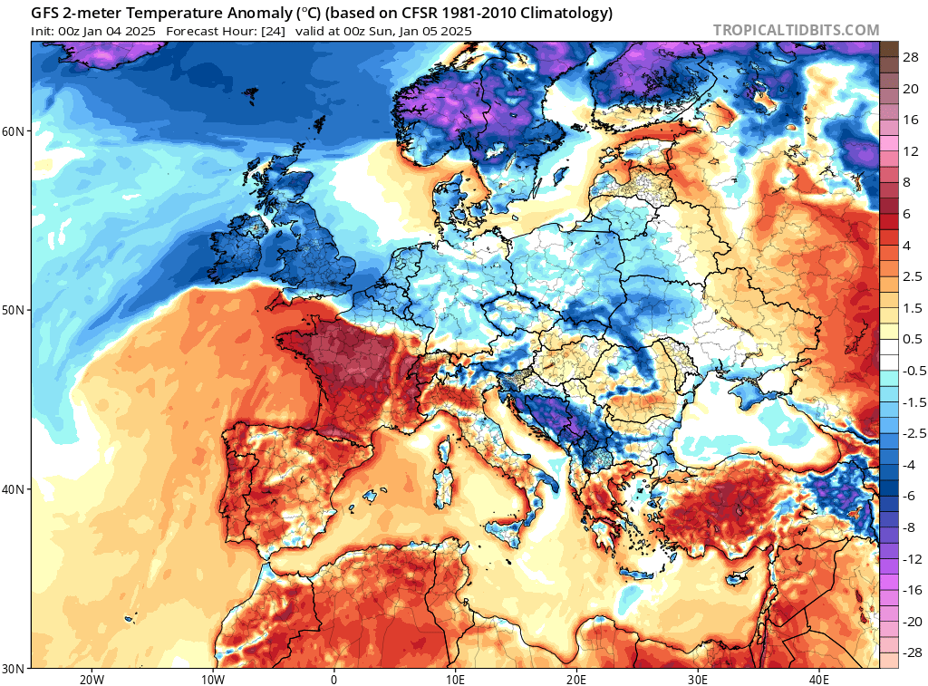 Modélisation – Arrivée d’un violent redoux ce samedi 04 janvier en soirée…
