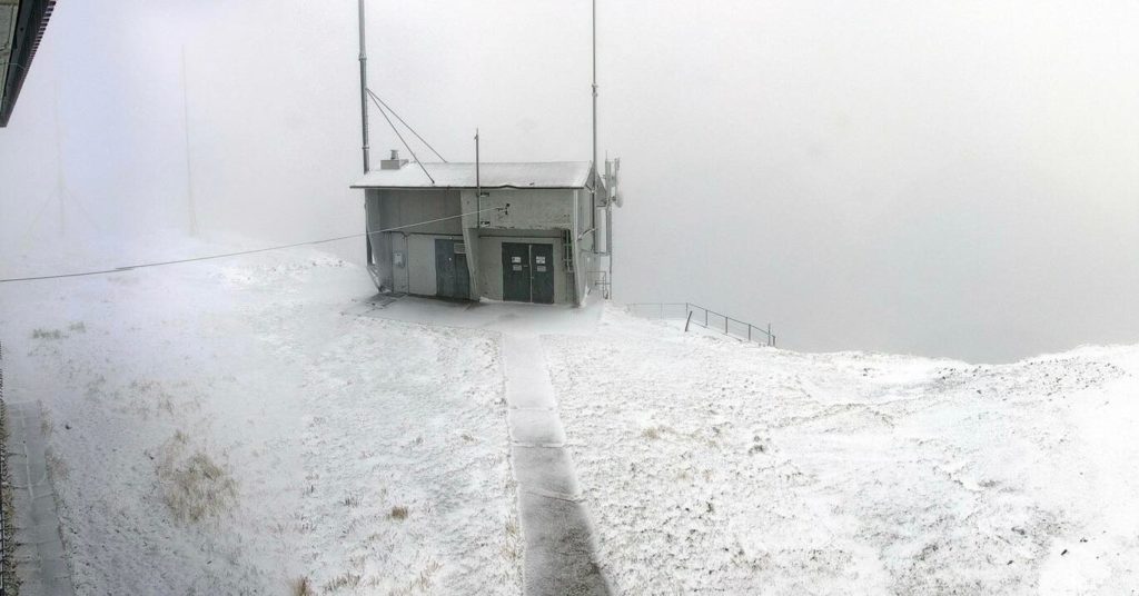 Les sols sont même tout blancs dès 1.400m d’altitude ! Dans le Haut-Jura (39), on relève même jusqu’à 2-3cm de neige à La Dôle (1600m)… Et les averses de neige se poursuivent toute la matinée par une température de -1,1°C.