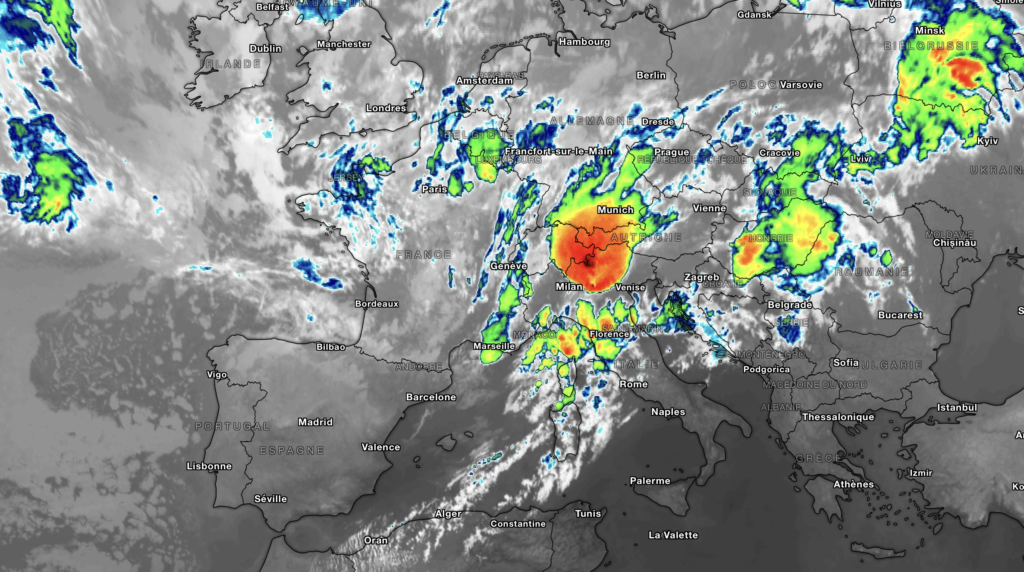 Image satellite IR d’un nuage d’orage, ce mardi matin en Italie – @Meteored
