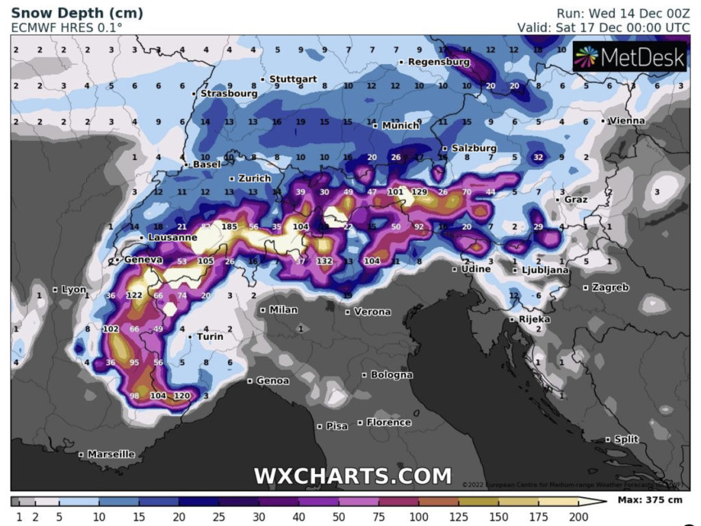 Modélisation Européenne – Neige au sol (vendredi soir)