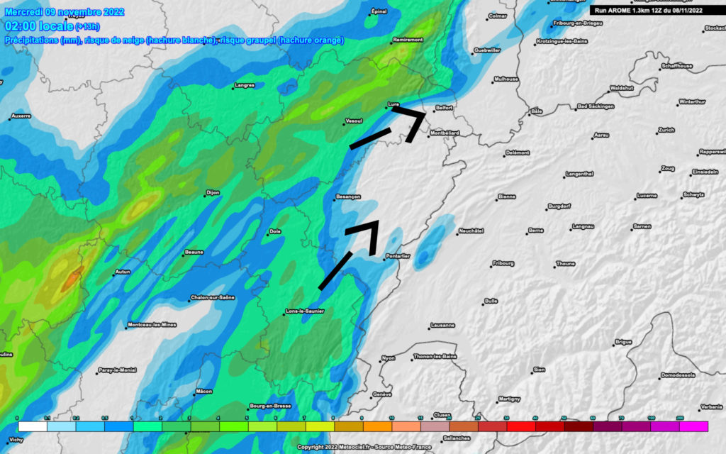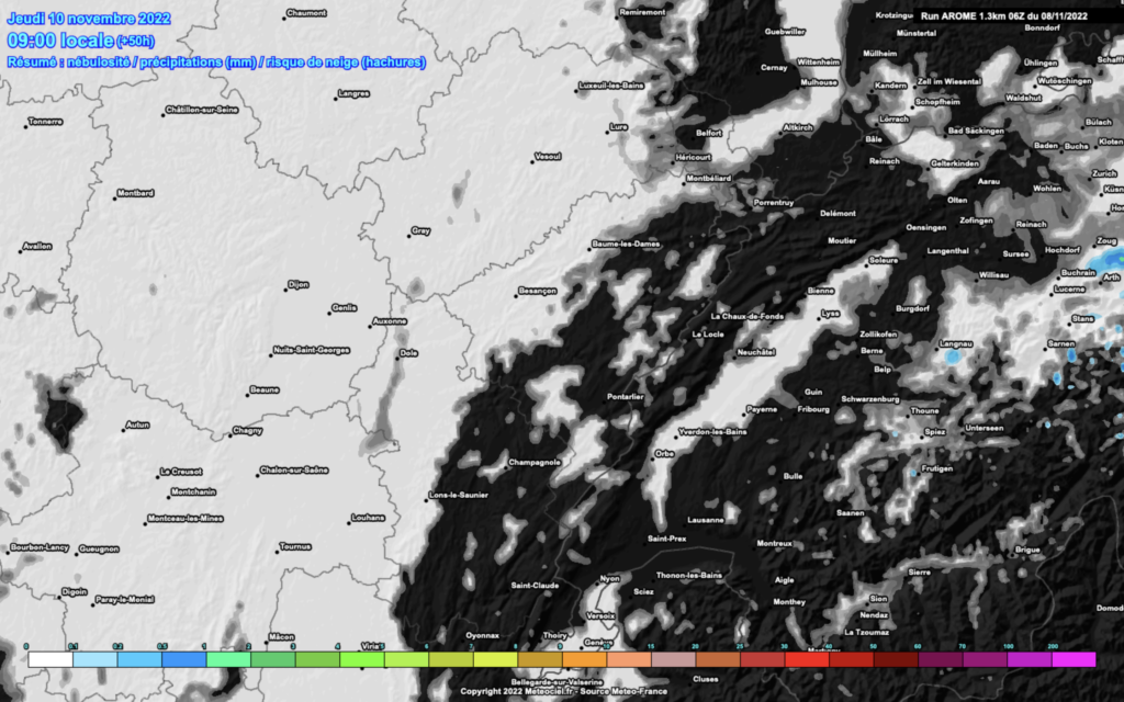 La douceur et le ciel voilé qui ont régné ce mardi 08 novembre en Franche-Comté laissent place à une dégradation en cours de nuit qui se prolonge dans la journée de mercredi 09 novembre 2022.