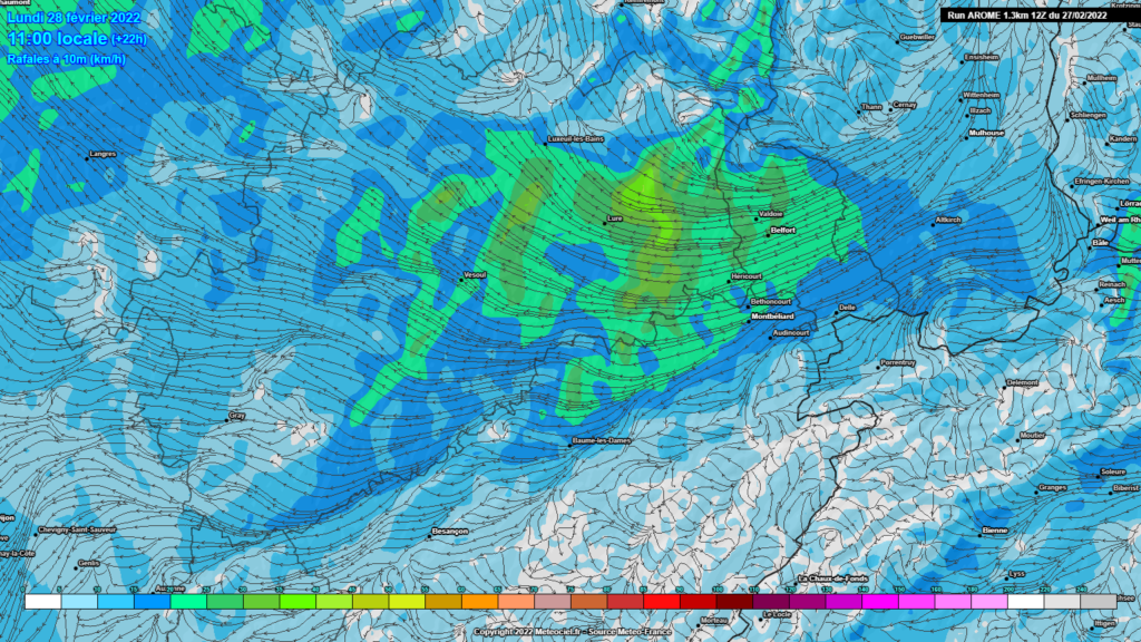 Dernières rafales du vent continental (la bise) prévues ce Lundi matin, avant une disparition totale Mardi…