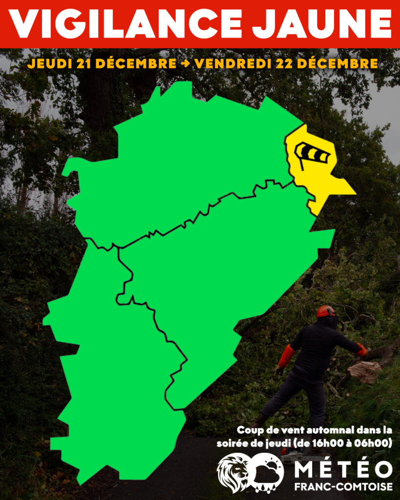 « Le Territoire de Belfort est donc placé en vigilance jaune pour le paramètre vent. »