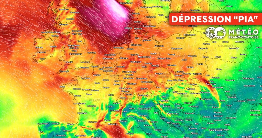 Comme annoncé dans le bulletin du jour, la dépression « Pia » qui frappe le Danemark ce jeudi 21 décembre 2023 apporte de fréquentes pluies et un renforcement du vent le même jour en Franche-Comté.