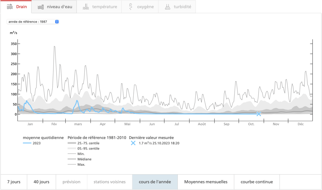 Évolution du débit aux Brenets (CH) – ©OFEV