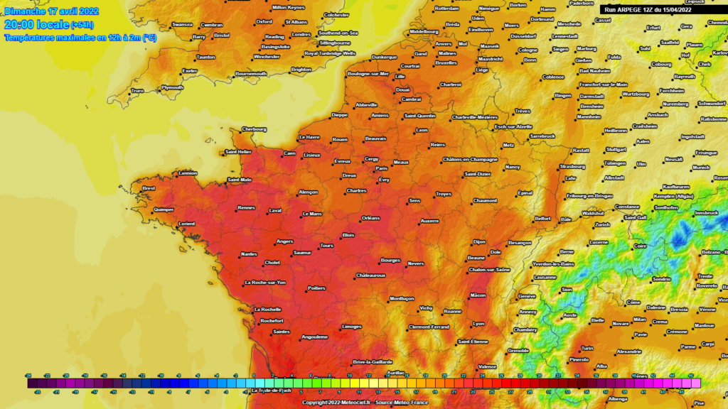 En image – La douceur modélisée (par Arpège) ce Dimanche après-midi en France.